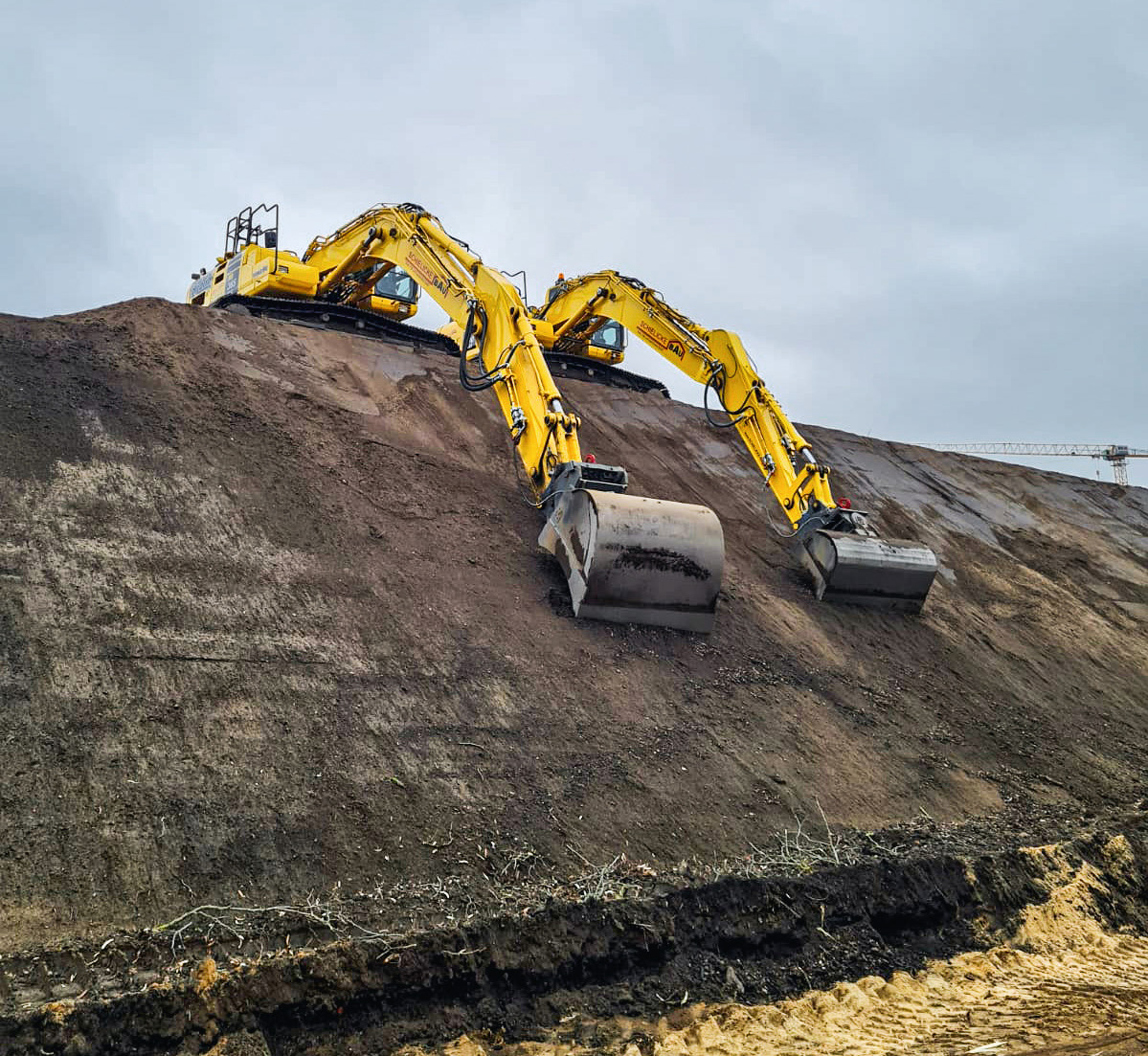 Unser moderner und umfangreicher Maschinenpark versetzt uns in die Lage, alle anfallenden Arbeiten problemlos in Eigenregie umsetzen zu können. Besonders zu erwähnen sind unsere mit intelligenten Steuerungen und 3D GPS ausgestatteten Bagger. Durch die präzise Steuerung unserer Bagger können wir auch in schwierigem Gelände exakte und effiziente Arbeiten durchführen. Die modernen 3D GPS-Technologie erlaubt es uns, die Positionierung und Ausrichtung der Maschinen bis auf den Zentimeter genau zu bestimmen. Dadurch gewinnen wir die Möglichkeit, Bauprojekte noch schneller und genauer umzusetzen, was uns einen klaren Wettbewerbsvorteil verschafft. Unsere Kunden schätzen die hohe Qualität und Zuverlässigkeit, die wir dank unserer technologisch fortschrittlichen Ausstattung bieten können. Mit unserem Maschinenpark sind wir bestens gerüstet, um auch in Zukunft anspruchsvolle Projekte erfolgreich umzusetzen.
